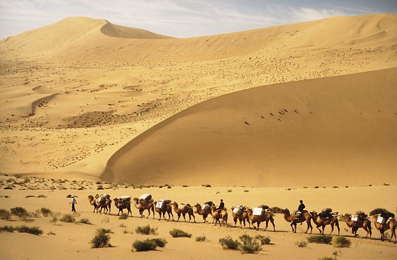 Карава́н (фр. caravane, от перс. كاروان, кар(е)ван, вероятно от курд. kar, миссия + van, люди, или санскр. karabhah — молодой верблюд или слон) — группа людей, путешествующих вместе с торговыми, паломническими или иными целями и объединившихся для взаимной помощи и защиты в суровой или опасной местности, а также их вьючных животных: верблюдов, ослов, мулов или лошадей.