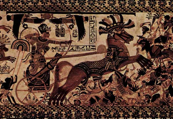 Именно изобретение колеса на спицах создало из колесницы грозное и всесокрушающее оружие, встяхнувшее всю Ойкумену. Произошло это в первой четверти второго тыс. до н. э. Именно тогда колесница стала вершительницей судеб народов — арии на «громовых запряжках» ворвались в долину Инда, шаньцы в XVIII в. до н. э. захватили Китай (вернее центральную часть нынешнего Китая), в Европе носители культуры терра-мар и иже с ними значительно потеснили автохтонов в горы и леса. Египту так же досталось, но не от степняков Евразии, а от ближневосточных кочевников (гиксосов), весьма быстро принявших на вооружение конные колесницы.