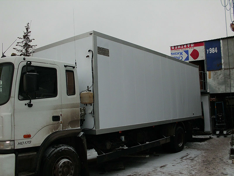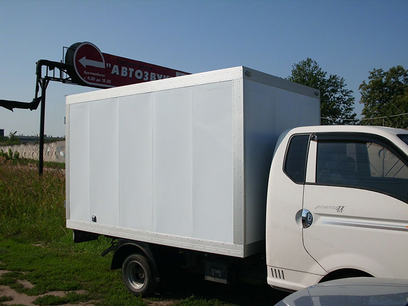 При изготовлении фургонов из сэндвич-панелей используется экструдированный пенополистирол Styrofoam (пр-во — Финляндия) используемый многими зарубежными производителями фургонов и отлично зарекомендовавший себя. Абсолютно все фургоны производятся из армированных сэндвич-панелей, что значительно увеличивает срок службы фургона и практически позволяет возить любые грузы даже навалом. Герметизация швов производиться клеем-герметиком на основе МS-полимера (на данный момент герметики на основе МS-полимера являются лучшими по практически по всем параметрам). Снаружи фургоны облицованы алюминиевым анодированным уголком не подверженным коррозии и сохраняющим привлекательный внешний вид на весь срок эксплуатации фургона.